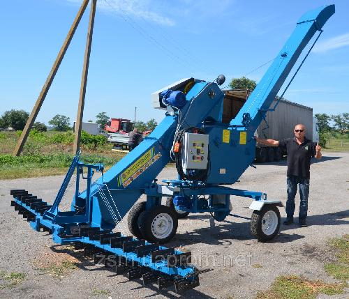 - труба тримера може легко регулюватися по висоті від 2,5 до 4,5 м лебідкою і має оригінальну конструкцію, що дозволяє підвищити дальність і кучність польоту зерна;